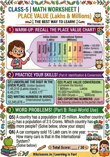 We’ve created a complete collection of printable worksheets maths (PDF) designed for students from Grade 1 to Grade 5. These worksheets focus on building strong fundamentals through place value worksheets, multiplication practice sheets, and more.